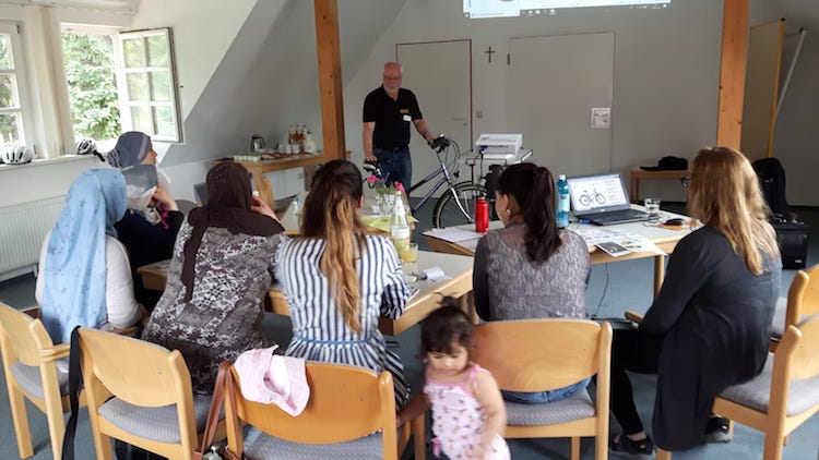 Für die Verkehrs- und Fahrradschule konnte Klaus Ulbricht vom ADAC als Referent gewonnen werden. „Viele geflüchtete Männer haben einen Führerschein und sind somit fit im Straßenverkehr“, begründet Diesmann das Kursangebot für Frauen. In Deutschland werde Kindern schon im Kindergarten und der Grundschule das richtige Verhalten im Straßenverkehr vermittelt. „Bei neu zugezogenen Frauen, klafft bei diesen Themen eine Lücke, die zu füllen ist“, stellt Diesmann fest.