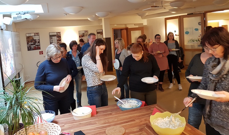Auch in diesem Jahr hatten die Mitarbeiter des Lorenz-Werthmann-Hauses Kartoffeln und Quarkdips unterschiedlicher Varianten und den spirituelle Input vorbereitet und gastfreundlich eingedeckt. Nach dieser nicht nur körperlichen Stärkung, ging es zurück an den Arbeitsplatz.