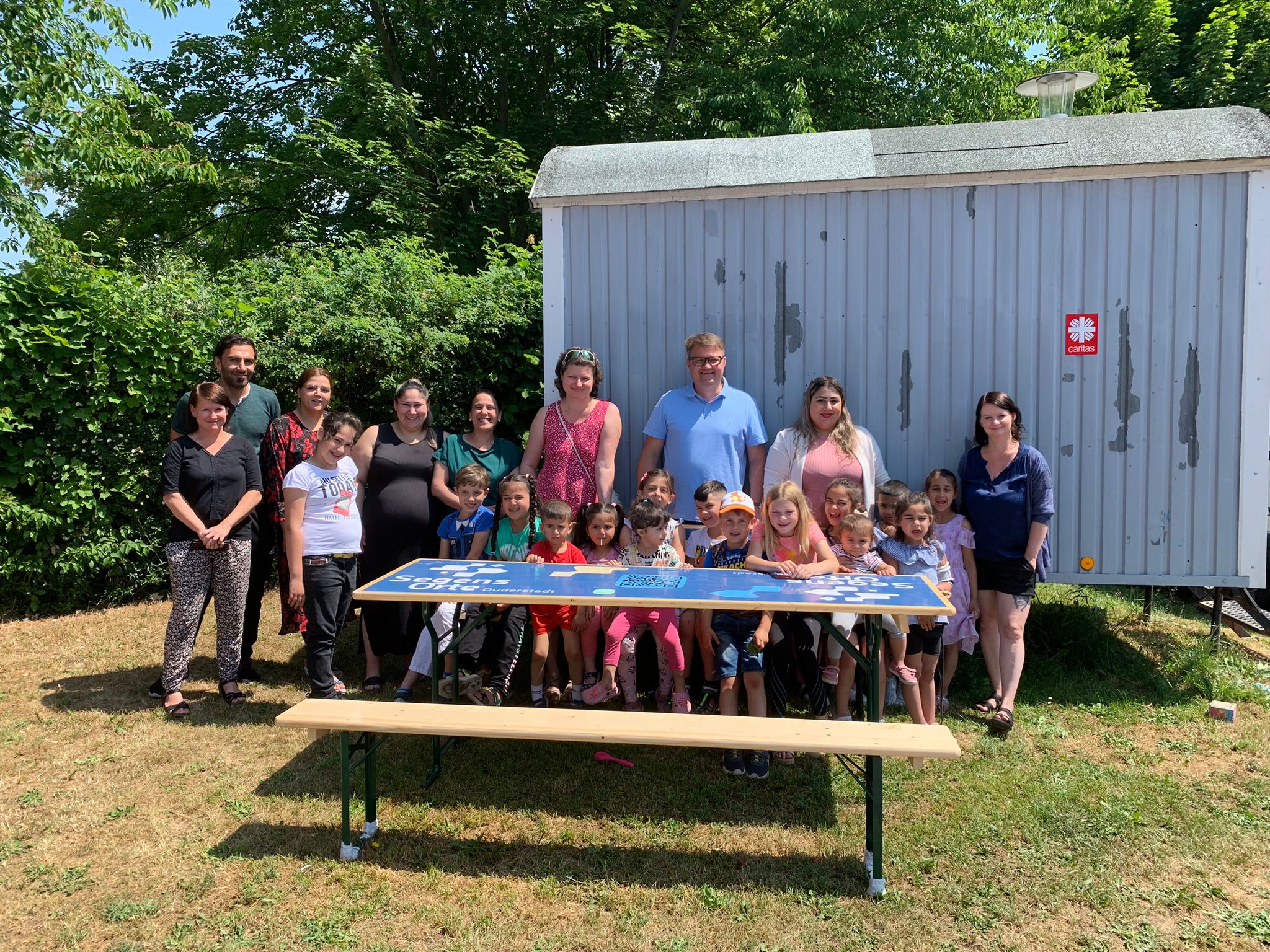 Die Bewohnerinnen und Bewohner des Quartierprojekts Gemeinsam.Weststadt.Aktiv. (GWA-Duderstadt) freuten sich über den Besuch von Bürgermeister Thorsten Feike am Projekt-Bauwagen. Noch während die Bewohnenden des Quartiers mit dem Aufbau von Sitzgelegenheiten beschäftigt waren, Duderstadts Bürgermeister früher als angekündigt vorbei, um sie tatkräftig zu unterstützen.