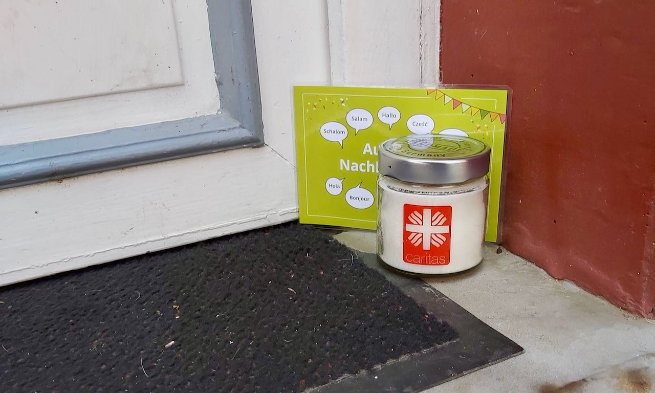 • … an manchen Türen wurde der nachbarschaftliche Gruß auf der Schwelle hinterlassen. | Foto: Riemekasten-Remy