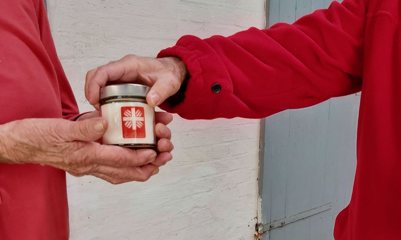 • Vorbereitet zum Verteilen in der Nachbarschaft: Kerzen und Postkarten. | Foto: Riemekasten-Remy