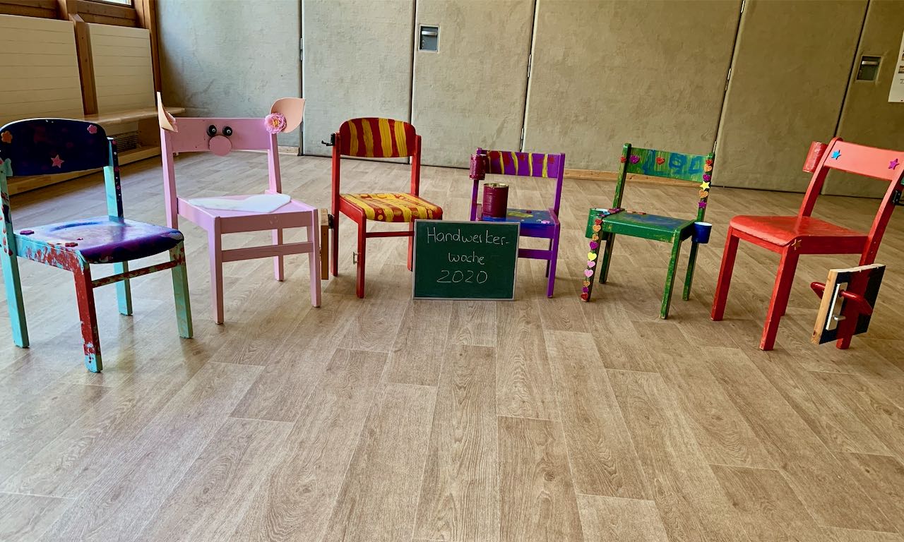 An den darauffolgenden Tagen wurde bei ausgelassener Stimmung gewerkelt, gebastelt und gekocht. Einige sägten, hämmerten, bohrten und schraubten, während andere schnitten, klebten und malten. Wieder andere bereiteten leckere Speisen zu. So gab es Apfelmus, Apfelkuchen, zwei große Töpfe Kürbissuppe mit selbstgemachten Brötchen sowie Pizza in den verschiedensten Sorten während der Woche.