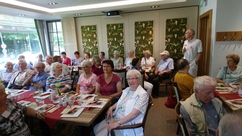 In der Klinik begrüßte der Chefarzt die Seniorengruppe, erläuterte das medizinisch-therapeutische Spektrum der Rehaklinik und der Leiter der physikalischen Abteilung führte auch anschließend in Kleingruppen durch alle Anwendungsräume und therapeutischen Möglichkeiten der Klinik.