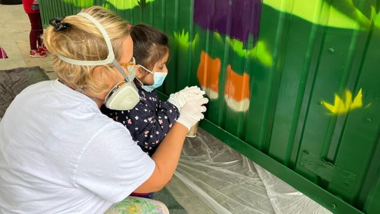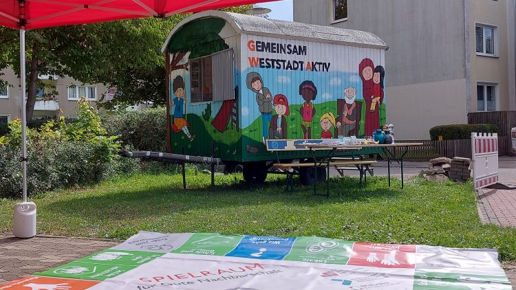 Der Treffpunkt für das Quartiersprojekt „Gemeinsam.Weststadt.Aktiv.“ rund um die Kolpingstraße in Duderstadt wurde mit einem großen Graffiti verschönert.